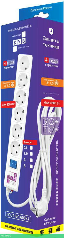 сетевой фильтр / белый / 5.0 / Schuko (евро с заземлением) / Schuko (евро с заземлением); Schuko (евро без заземления) / нет / нет / нет