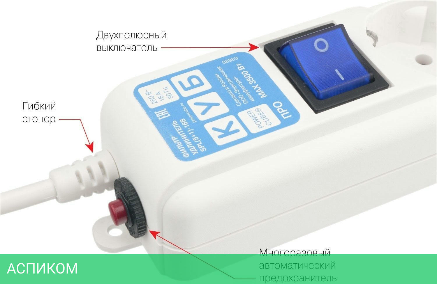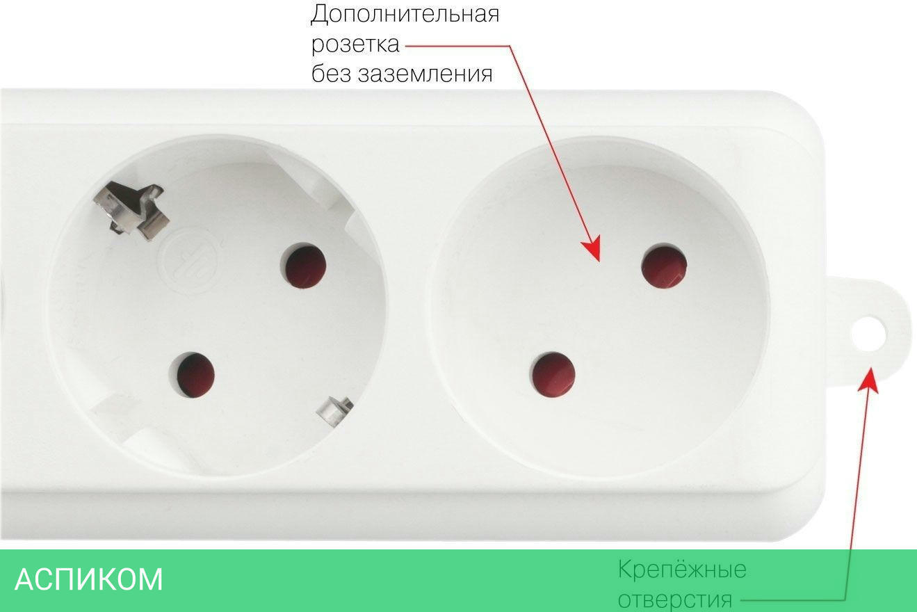 6 розеток (5 с заземлением + розетка без заземления). Защита от импульсных помех и короткого замыкания. LC-фильтр от высокочастотных помех. Защитные шторки. Двухполюсный выключатель. Предохранитель на 16 А. Удобные крепёжные отверстия. Материал корпуса соответствует требованиям пожаробезопасности.