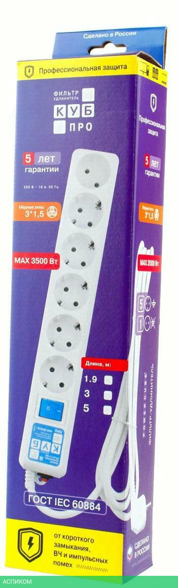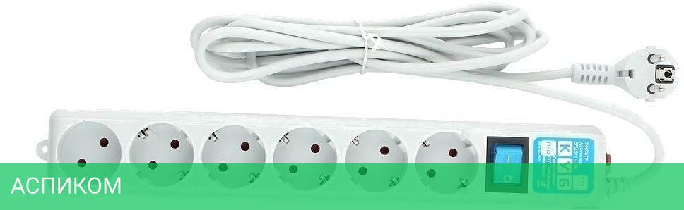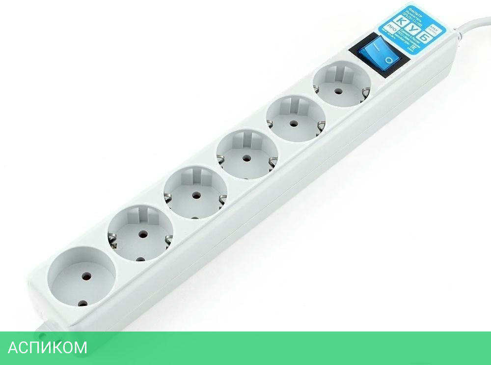 сетевой фильтр / белый / 6 / 3.0 / Schuko (евро с заземлением) / Schuko (евро с заземлением) / нет / да / нет