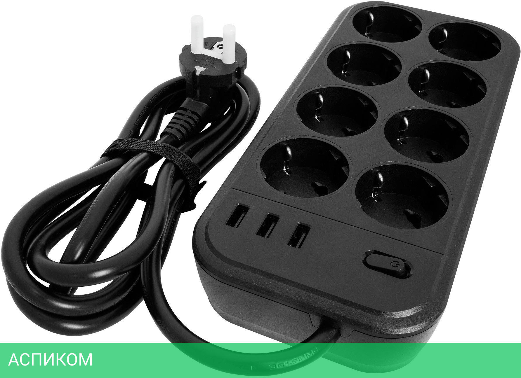 сетевой фильтр / 8 / 3.0 / Schuko (евро с заземлением) / черный / Schuko (евро с заземлением) / да / нет / нет