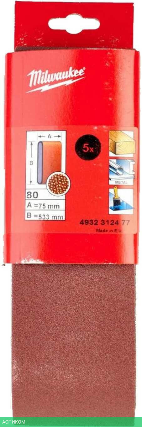 шлифовальная лента Milwaukee 75х533 мм/ зерно 80 (5 шт.), блистер