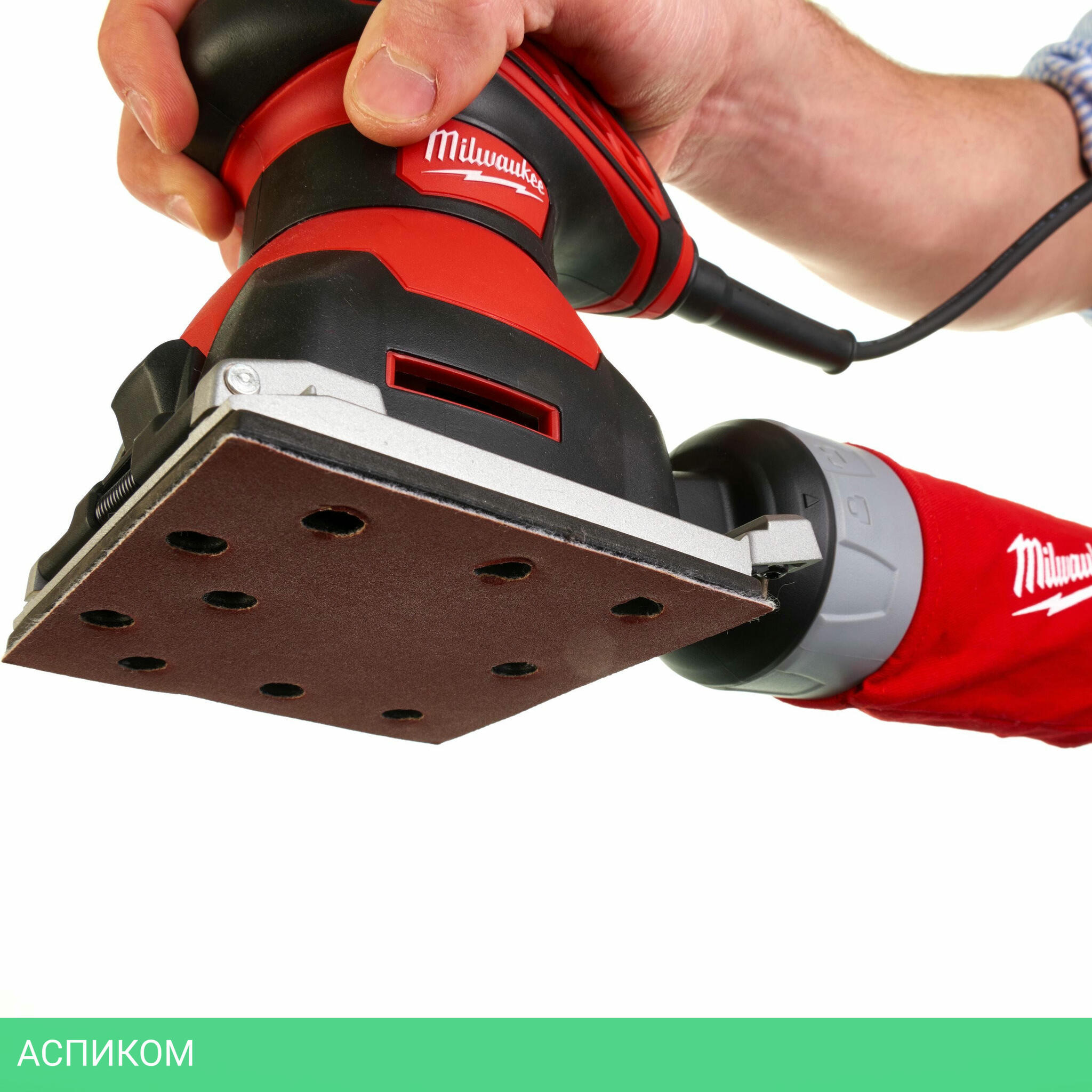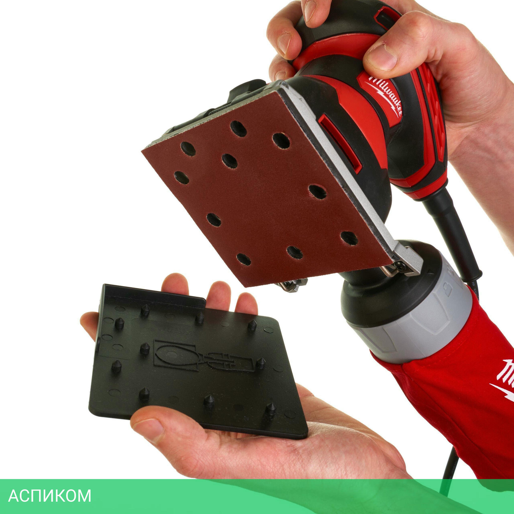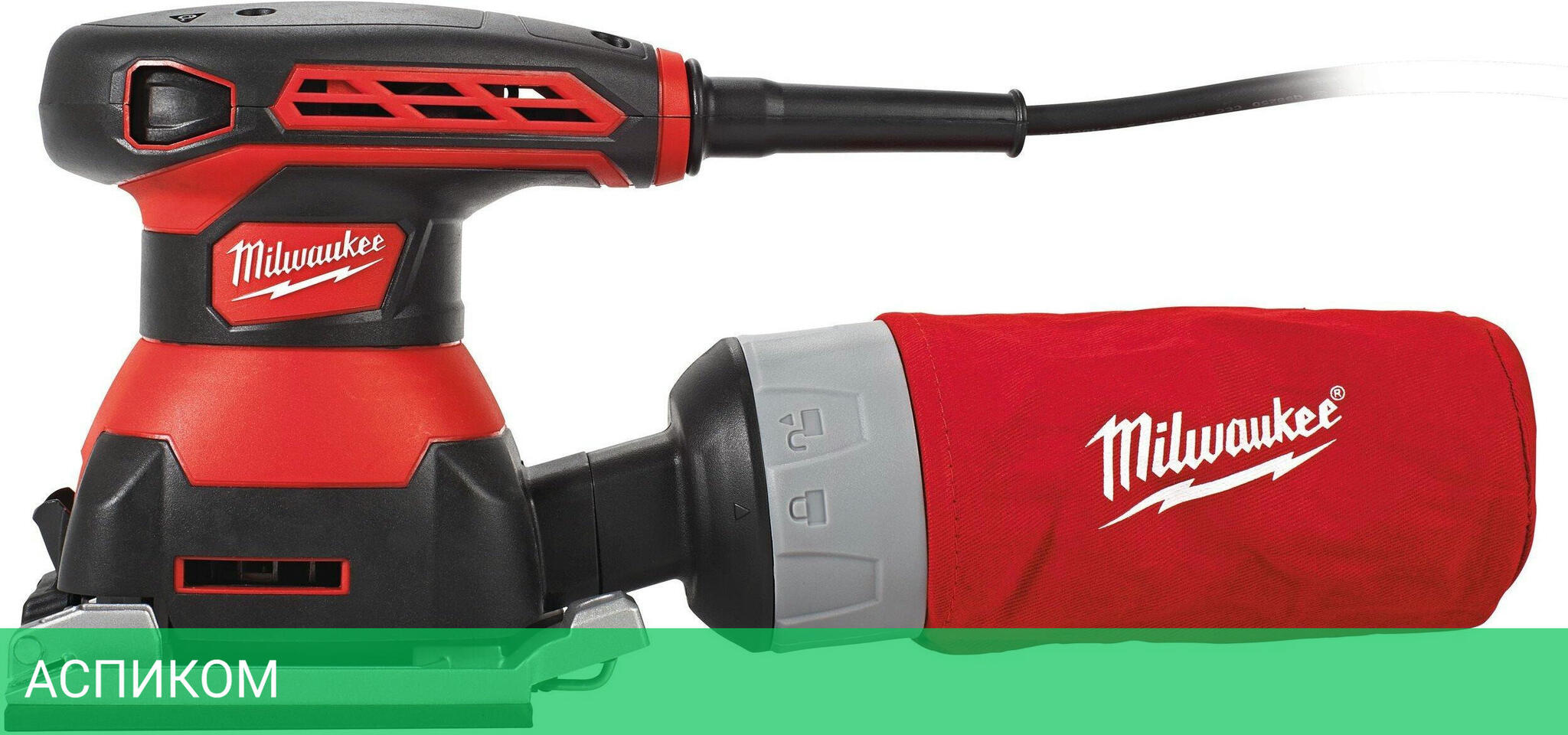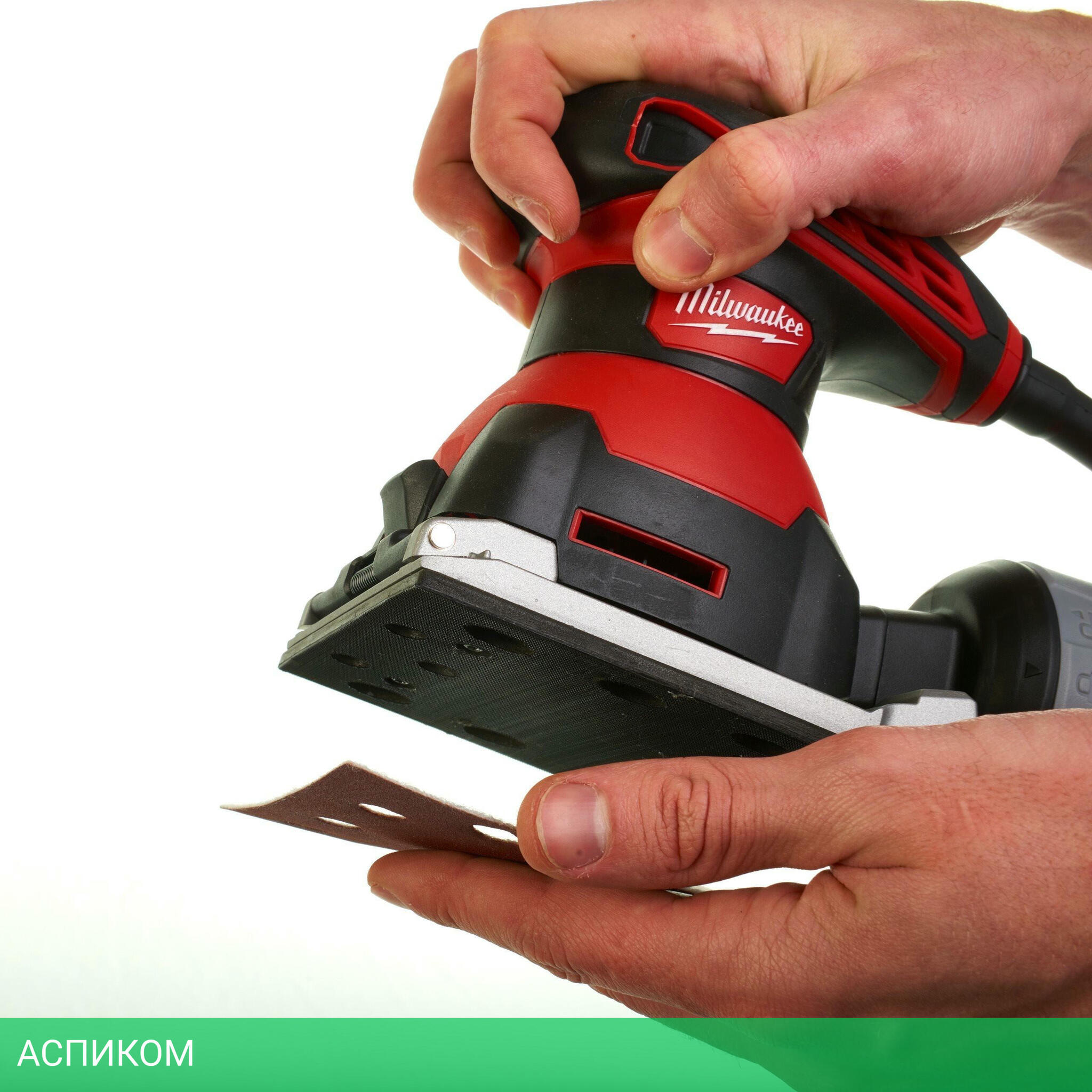 вибрационная шлифовальная машина Milwaukee SPS 140, шлифовальный бумага, адаптер для подключения пылесоса, пылесборник, кабель 4 м, инструкция по эксплуатации, поставляется в картонной коробке