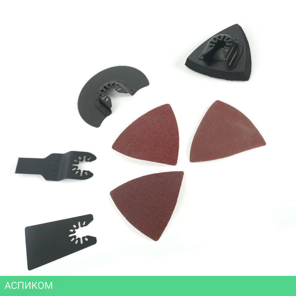 - Многофункциональный аккумуляторный резак 1 шт.- Плитка для шлифовальной бумаги 1 шт.- Шлифовальная бумага 3 шт.- Прямой резак по дереву 1 шт.- Сегментный пильный диск 1 шт.- Скребок 1 шт.- Инструкция с гарантийным талоном 1 шт.