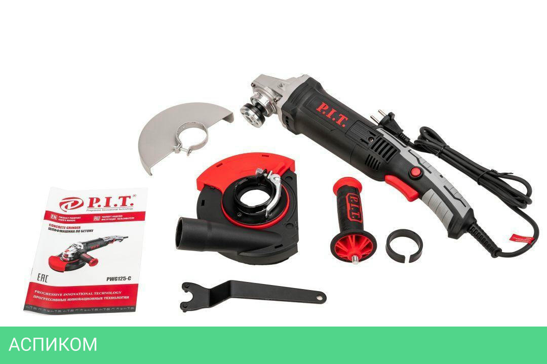 шлифмашина, защитный кожух, дополнительная рукоятка, пылеотводящий кожух, монтажный фланец, ключ и руководство по эксплуатации в упаковке.