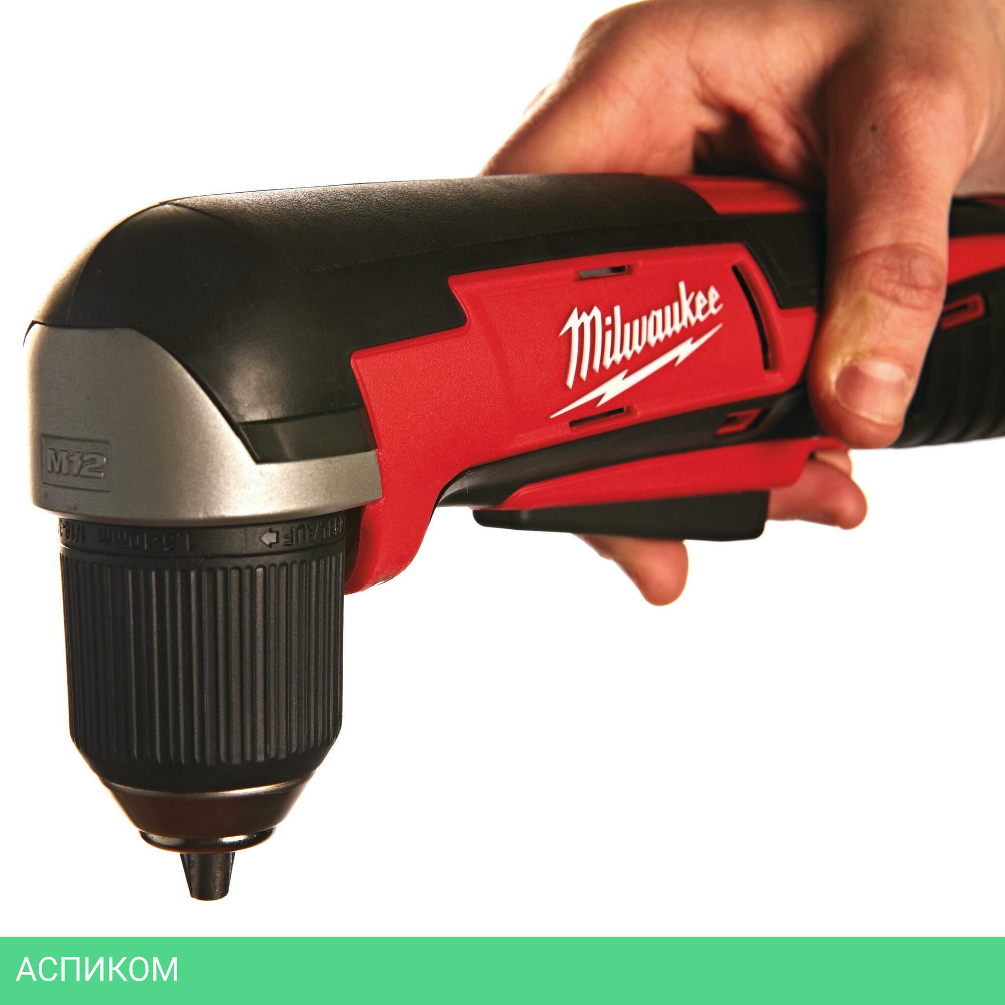 аккумуляторная компактная односкоростная угловая дрель Milwaukee C12 RAD-0, инструкция по эксплуатации, упаковка