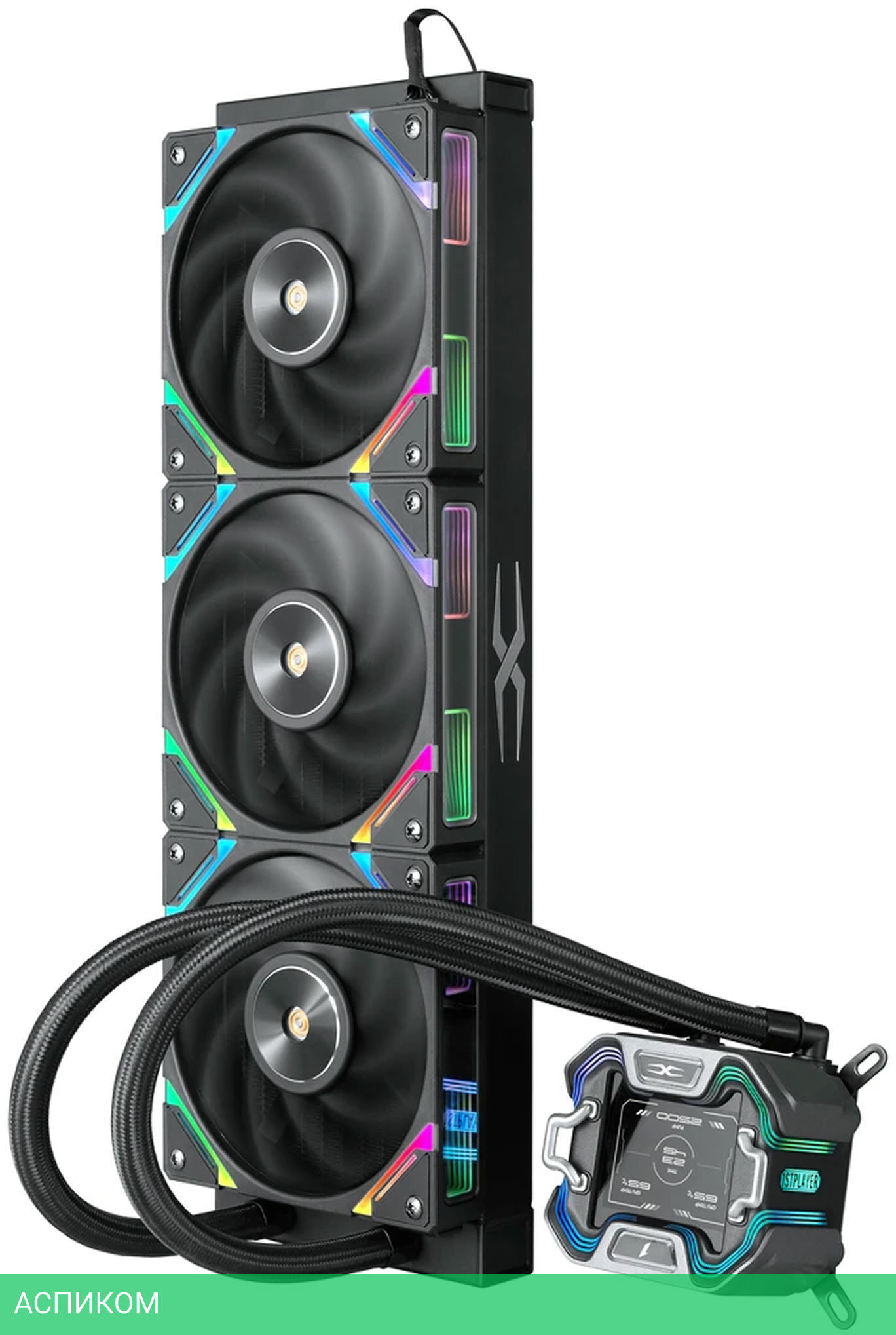 черный / жидкостное охлаждение / 12.0 / для процессора / 39.7 / нет / AM4; LGA1151 v2; LGA2011-3; LGA2011; LGA1151; LGA1150; LGA1155; LGA1156; LGA1700; AM5; LGA1851 / 2500.0 / жидкостное / 30.0 / алюминий / 120 / гидродинамический (FDB) / да / 300 / 5.2