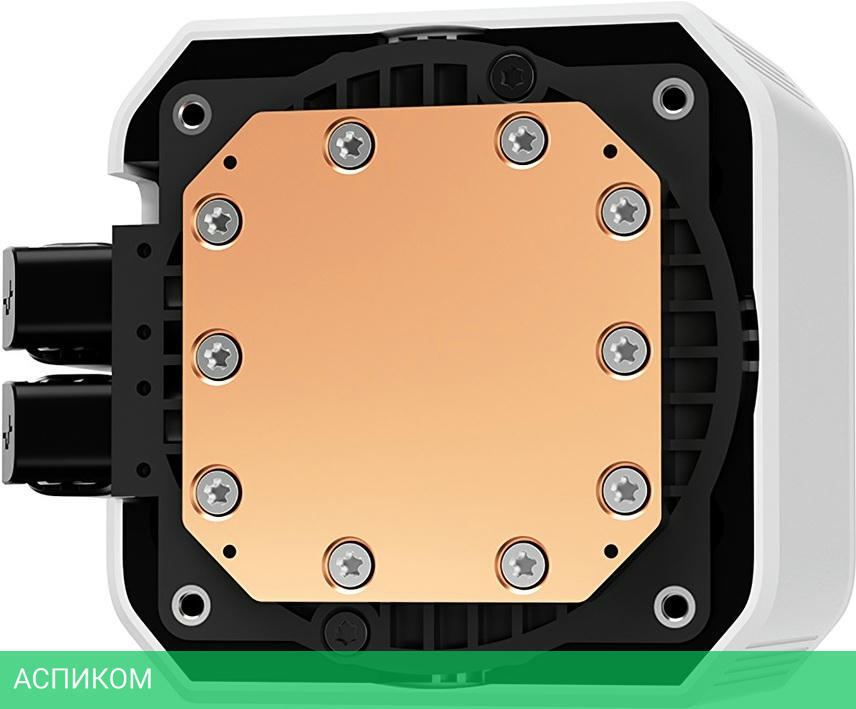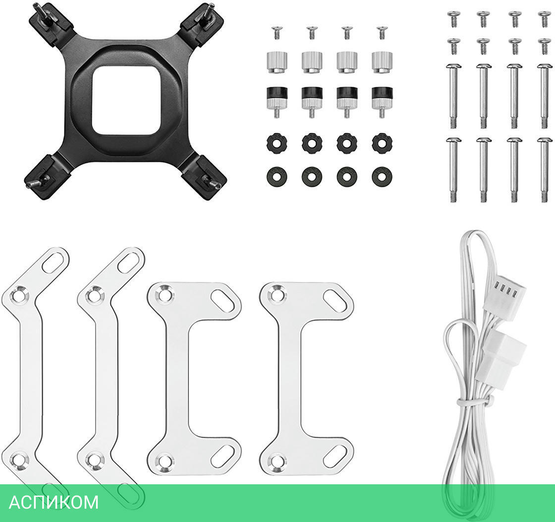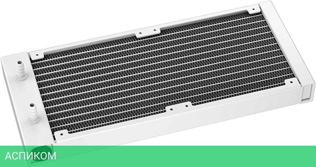 белый / жидкостное охлаждение / 120.0 / для процессора / 282.0 / AM4; LGA1200; LGA1151; LGA1150; LGA1155; LGA1700; AM5; LGA1851 / 2400.0 / жидкостное / 38.71 / металл / 120 / гидродинамический (FDB) / да / 27.0