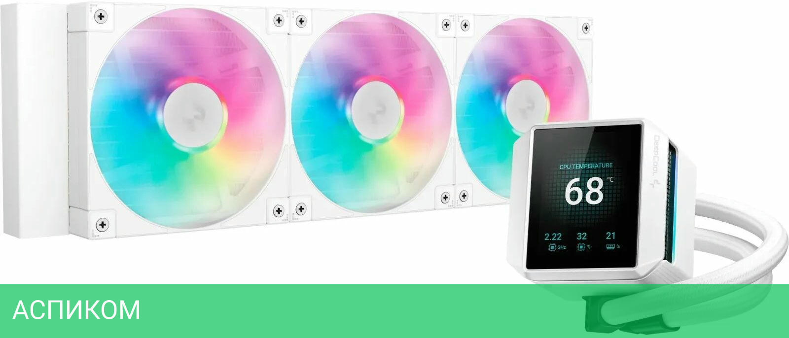 белый / жидкостное охлаждение / 12.0 / для процессора / 40.2 / да / AM4; LGA1200; LGA1151; LGA1150; LGA1155; LGA1700; AM5; LGA1851 / 2400.0 / нет / жидкостное / 38.71 / алюминий / 120 / гидродинамический (FDB) / да / 2.7