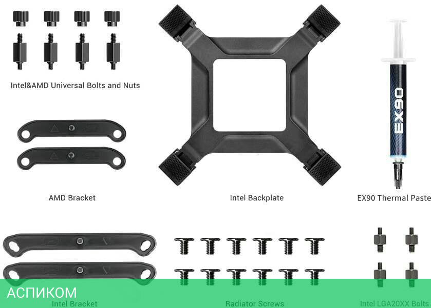 черный / жидкостное охлаждение / для процессора / да / AM4; LGA1151 v2; LGA2066; LGA2011-3; LGA2011; LGA1200; LGA1151; LGA1150; LGA1155; LGA1156; LGA1700; AM5; LGA1851 / 2200.0 / жидкостное / 33.7 / алюминий / 120 / гидродинамический (FDB) / да