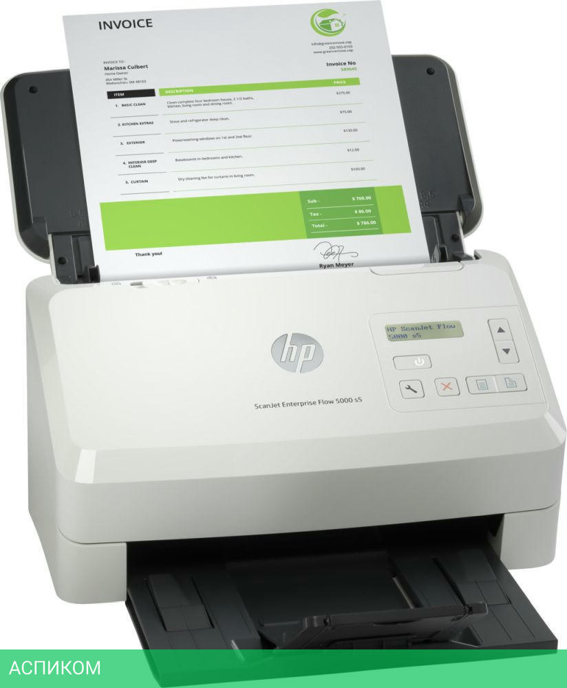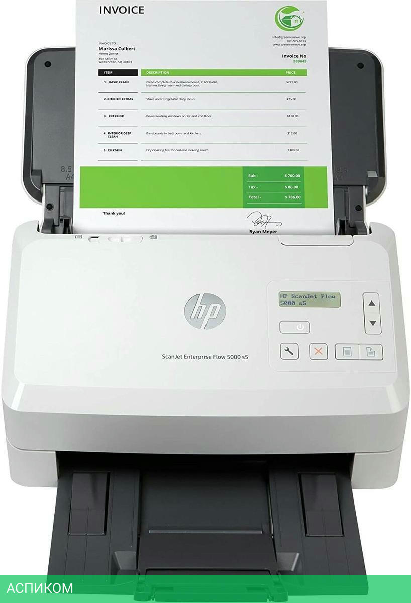 HP ScanJet Enterprise Flow 5000 s5; кабель питания; адаптер питания; кабель USB; механизм сканирования; рекламные листовки; руководство по установке