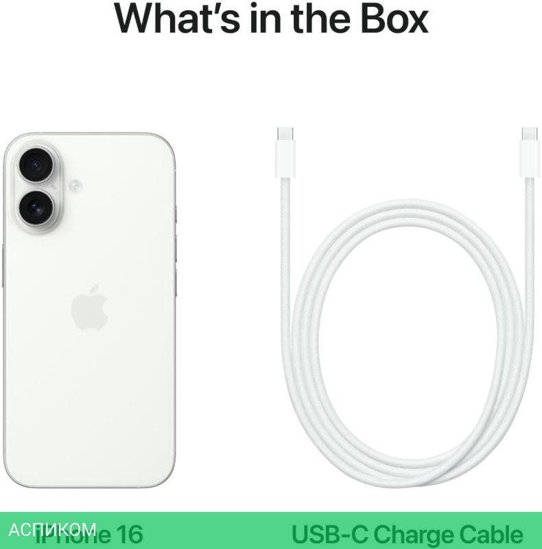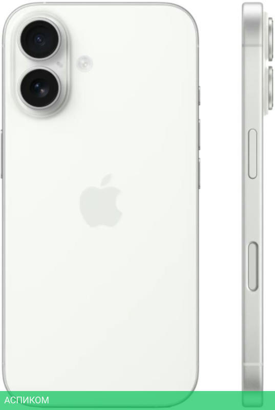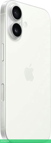 Смартфон Apple iPhone 16 128Gb A3287 белый (MYE93HN/A)/OLED/6.1″/1179x2556/iOS 18/8 ГБ/128 ГБ/Apple A18/6 (2+4) Core/48Mpx f/1.6/12Mpx f/1.9/1 nano-SIM/802.11be (Wi-Fi 7)/2G, 3G, 4G (LTE), 5G/Bluetooth 5.3/USB Type-C/GPS, ГЛОНАСС, BeiDou, Galileo/White/IP68/3561 mAh/147.6mm/71.6mm/7.8mm/170g