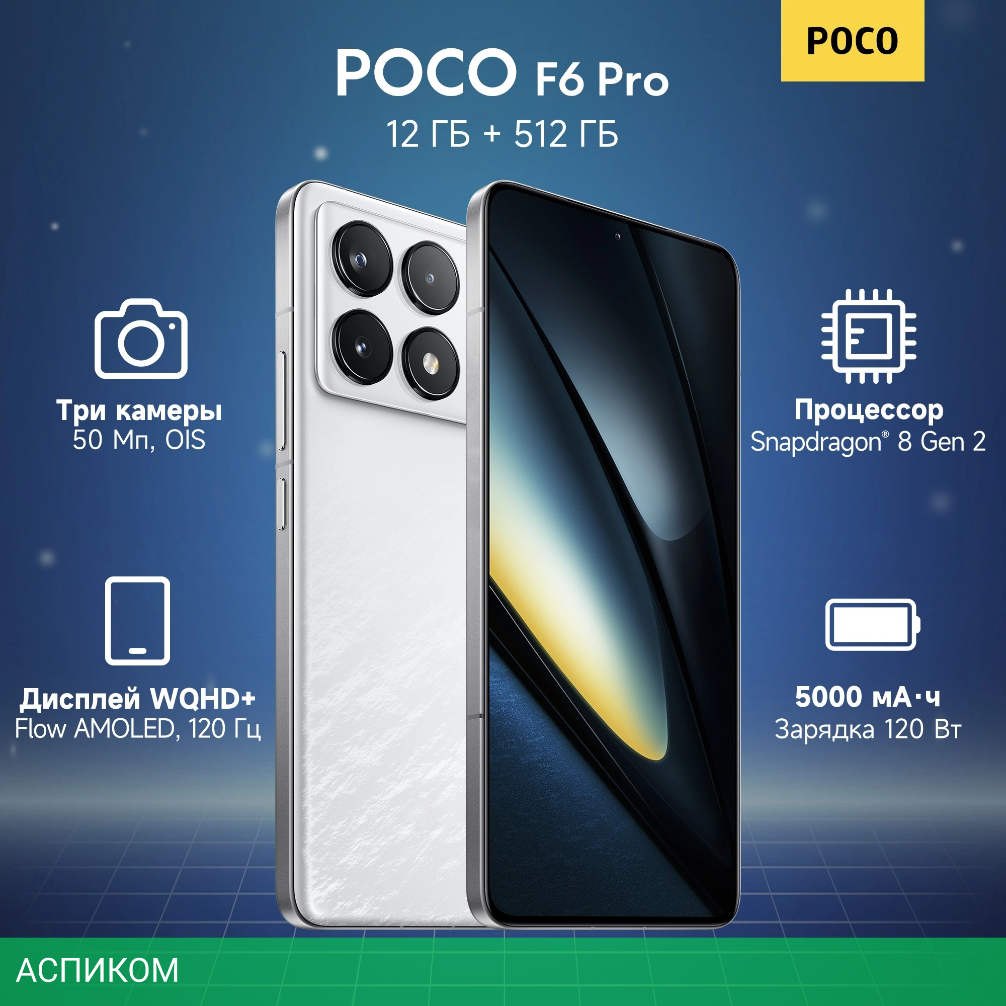 Смартфон Poco F6 Pro 12/512Gb White/Android 14/12 ГБ/512 ГБ f/1.6 f/2.5 nano-SIM/USB Type-C/White/5160 mAh/209g