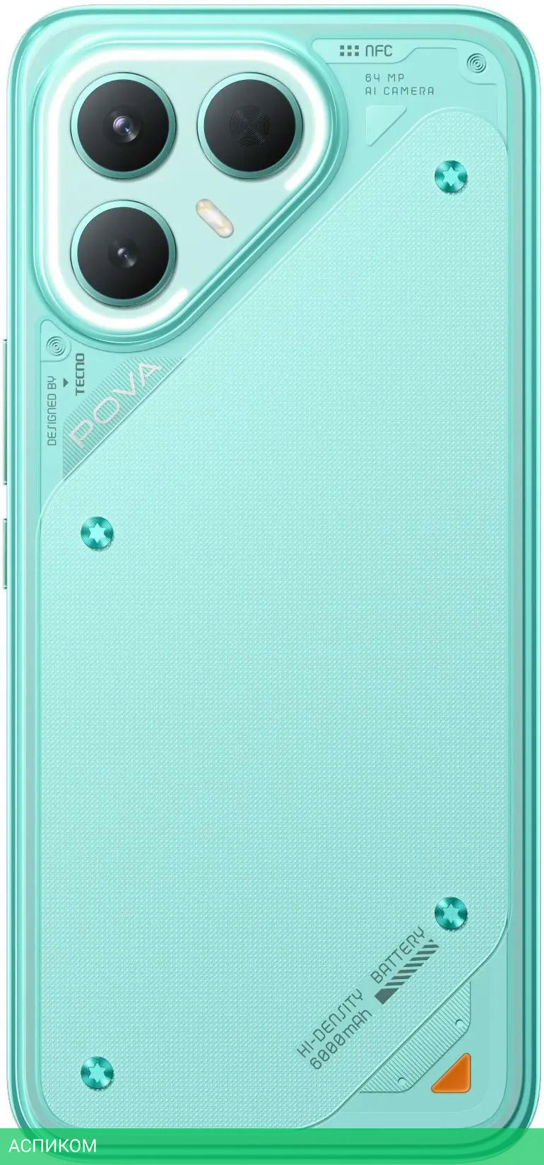 Смартфон Tecno Pova 7 Pro 5G 8GB/256GB Neon Cyan (LJ8)/AMOLED/6.78″/1224x2720/Android 15/8 ГБ/256 ГБ/Mediatek Dimensity 7300 Ultimate/8 (4+4) Core/64Mpx f/1.75/13Mpx f/2.2/2 nano-SIM/802.11ax (Wi-Fi 6)/2G, 3G, 4G (LTE), 5G/Bluetooth 5.4/USB Type-C/Fingerprint/AGPS, Galileo, QZSS, GPS, ГЛОНАСС, Beidou/IP64/6000