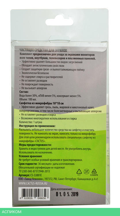 чистящий набор / для мониторов и дисплеев / спрей; салфетки / 100.0