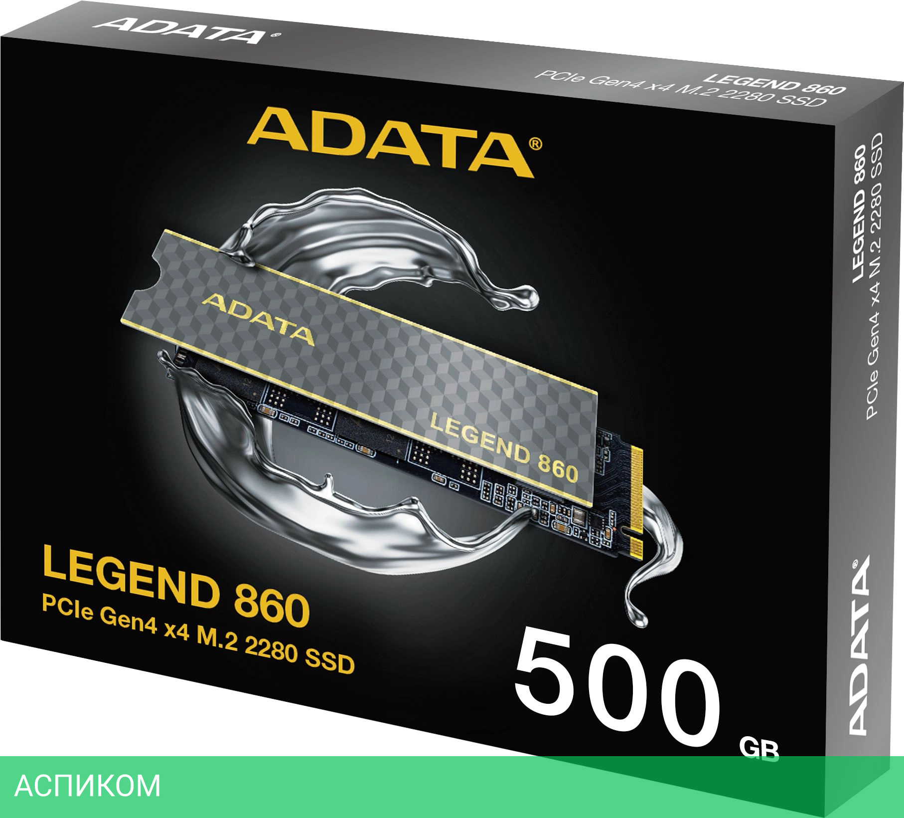 SSD диск A-Data Legend 860 500GB (SLEG-860-500GCS)/M.2/500 ГБ/PCI Express 4.0 x4/5000MBs/3000MBs/2M MTBF/3D TLC NAND/160TBW/RTL