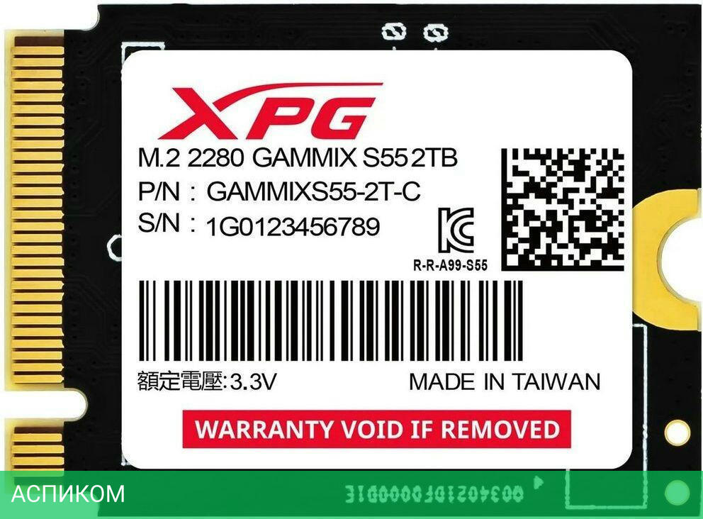 SSD диск A-Data XPG Gammix 2TB (SGAMMIXS55-2T-C)/M.2/2 ТБ/PCI Express 4.0 x4/5000MBs/3700MBs/1.5M MTBF/3D TLC NAND/RTL