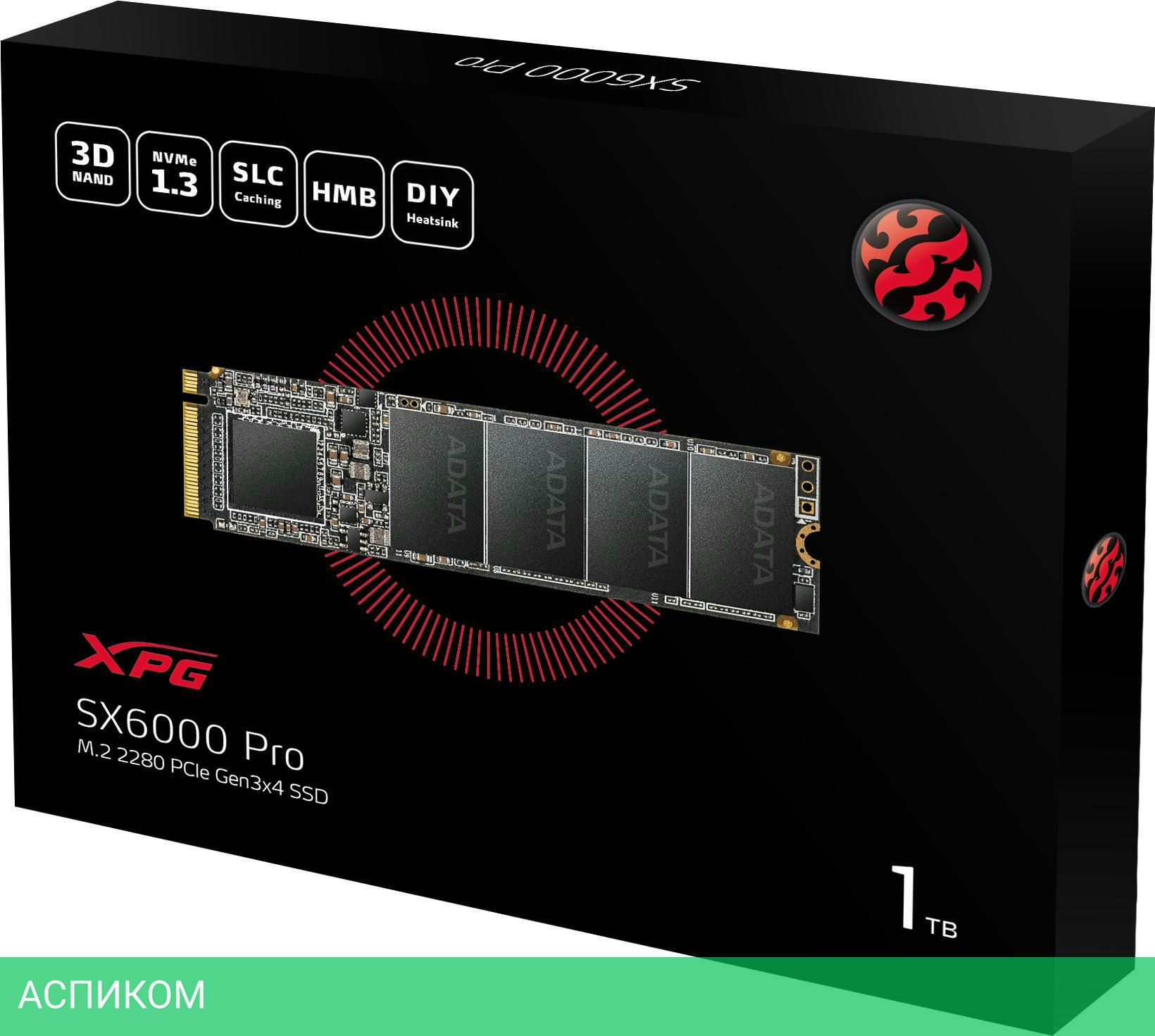 SSD диск A-Data XPG SX6000 Pro (ASX6000PNP-1TT-C)/M.2/1 ТБ/PCI Express 3.0 x4/2100MBs/1400MBs/250K IOPS/240K IOPS/2M MTBF/3D TLC NAND