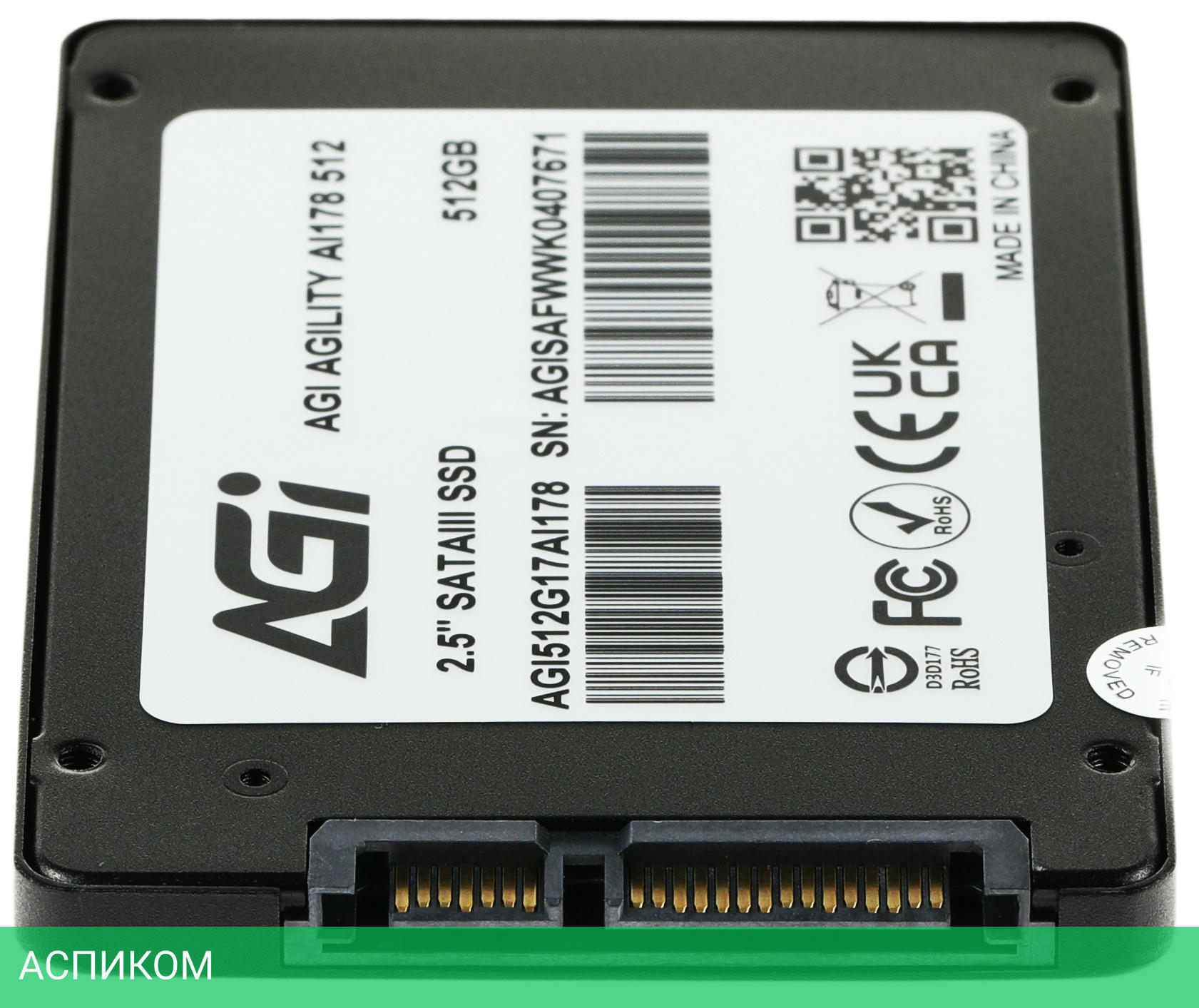 SSD диск AGI AI178 512GB (AGI512G17AI178)/2.5"/512 ГБ/SATA 3.0 (6Gbps)/530MBs/510MBs/1.6M MTBF/3D TLC NAND