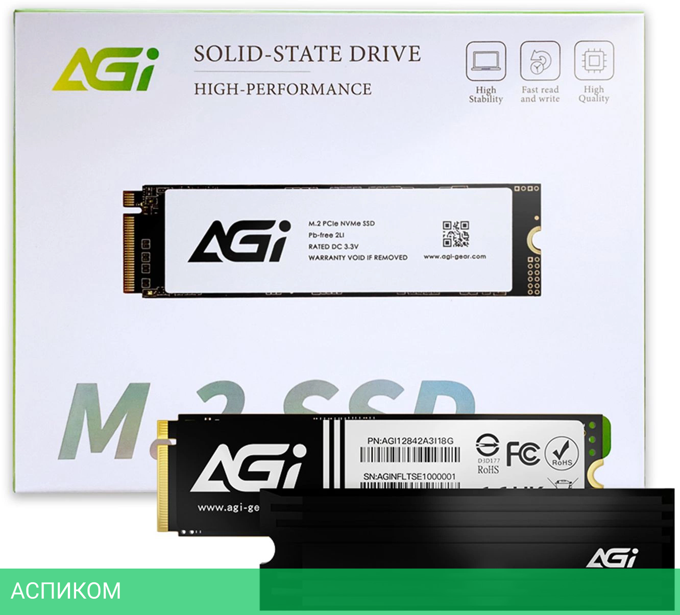 SSD диск AGI AI828 2TB (AGI2T0G44AI828)/M.2/2 ТБ/PCI Express 4.0 x4/7400MBs/6700MBs/2M MTBF/3D TLC NAND/RTL
