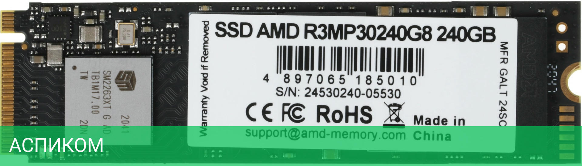 SSD диск AMD Radeon 240GB (R3MP30240G8)/M.2/240 ГБ/PCI Express 3.0 x4/2000MBs/1300MBs/3D NAND