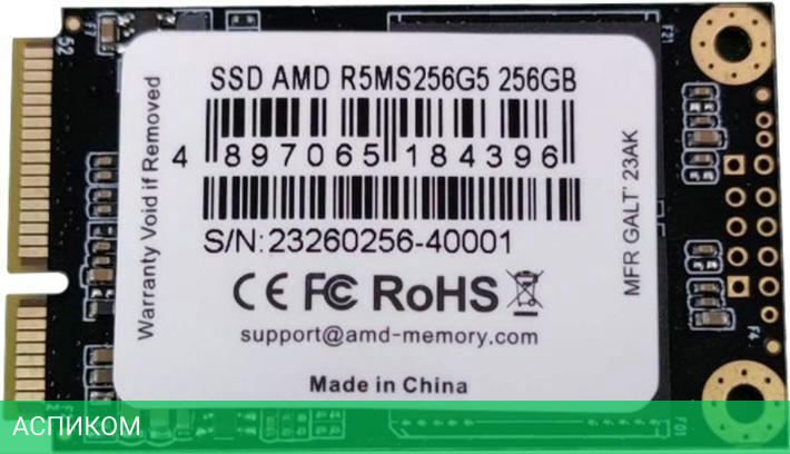 SSD диск AMD Radeon 256GB (R5MS256G5)/mSATA/256 ГБ/SATA 3.0 (6Gbps)/543MBs/467MBs/79.947K IOPS/71.708K IOPS/3D TLC NAND/RTL