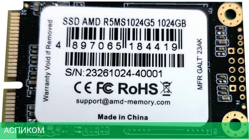 SSD диск AMD Radeon Client 1024GB (R5MS1024G5)/mSATA/1 ТБ/SATA 3.0 (6Gbps)/552MBs/491MBs/84.253K IOPS/57.7K IOPS/3D TLC NAND/RTL
