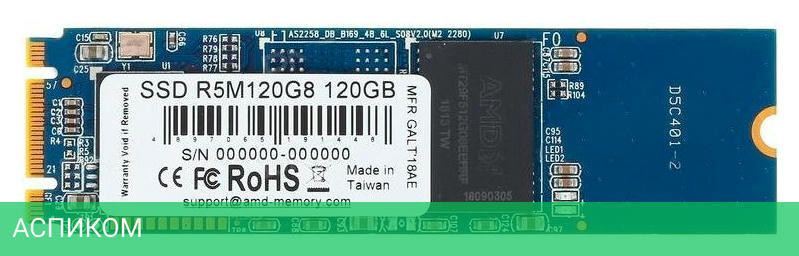 SSD диск AMD Radeon R5 120GB (R5M120G8)/M.2/120 ГБ/SATA 3.0 (6Gbps)/530MBs/400MBs/42K IOPS/41K IOPS/1.5M MTBF/3D TLC NAND
