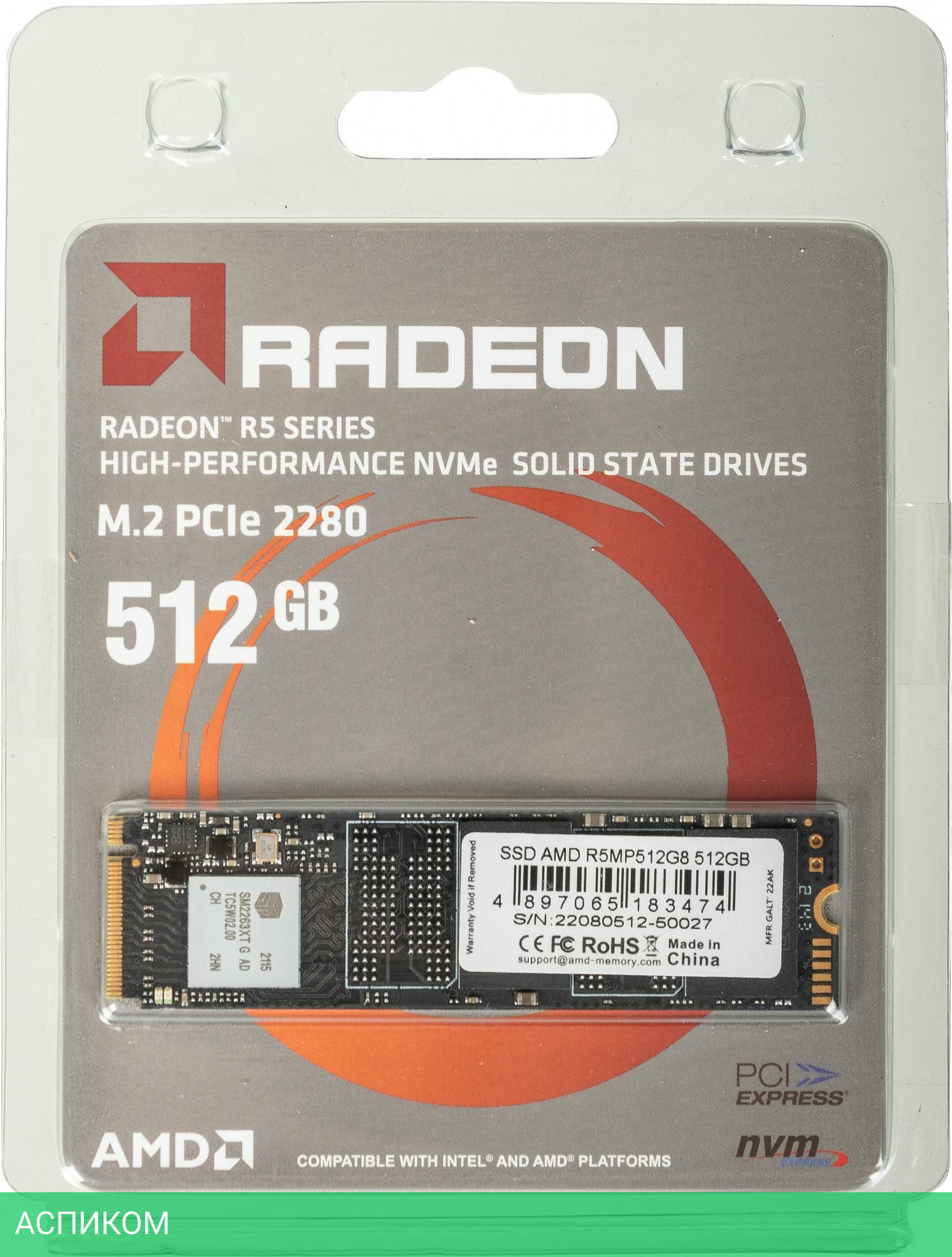 SSD диск AMD Radeon R5 NVMe 512GB (R5MP512G8)/M.2/512 ГБ/PCI Express 3.0 x4/2000MBs/1600MBs/3D TLC NAND