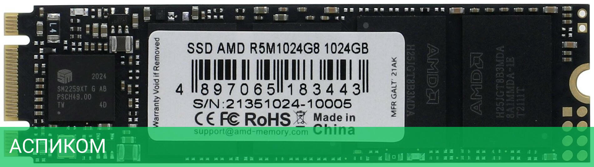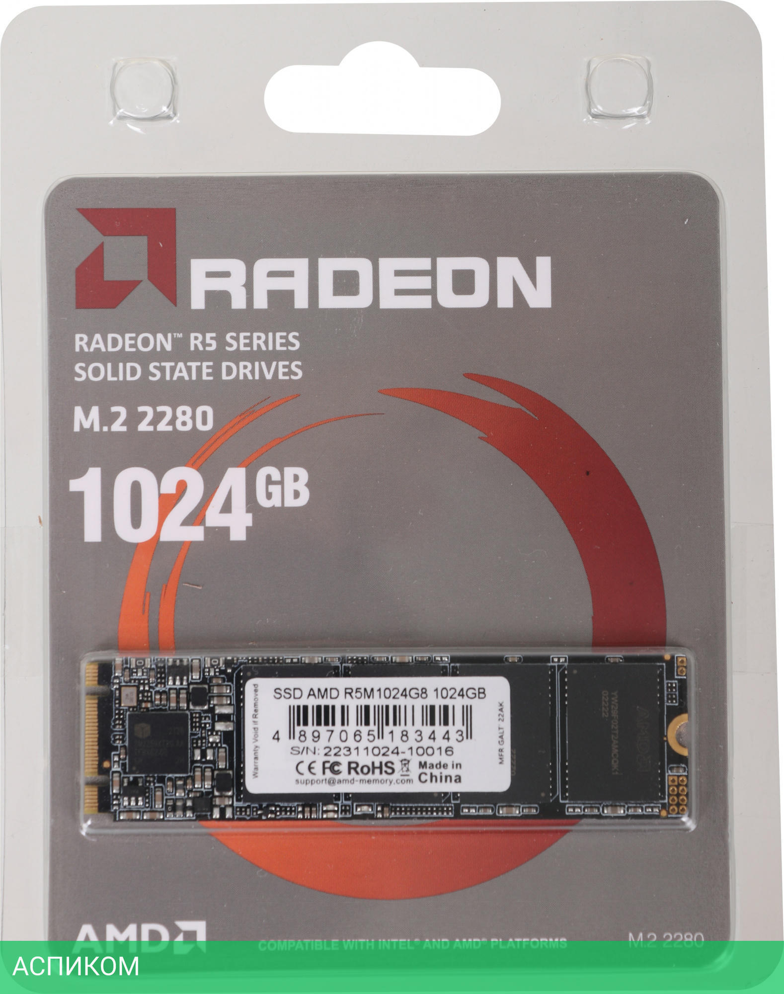 SSD диск AMD Radeon SATA III 1Tb (R5M1024G8)/M.2/1.024 ТБ/SATA/565MBs/470MBs/3D TLC NAND