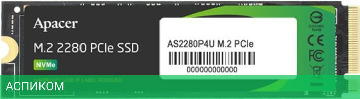 SSD диск Apacer AS2280P4U 1TB (AP1TBAS2280P4U-1)/M.2/1 ТБ/PCI Express 3.0 x4/3500MBs/3000MBs/670K IOPS/670K IOPS/1.8M MTBF/3D TLC NAND