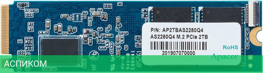 SSD диск Apacer AS2280Q4U 1TB (AP1TBAS2280Q4U-1)/M.2/1 ТБ/PCI Express 4.0 x4/7300MBs/6000MBs/750K IOPS/1000K IOPS/1.6M MTBF/TLC/RTL
