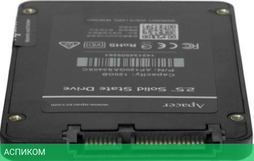 SSD диск Apacer AS340X 120GB (AP120GAS340XC-1)/2.5"/120 ГБ/SATA 3.0 (6Gbps)/550MBs/500MBs/38K IOPS/75K IOPS/1.5M MTBF/3D TLC NAND