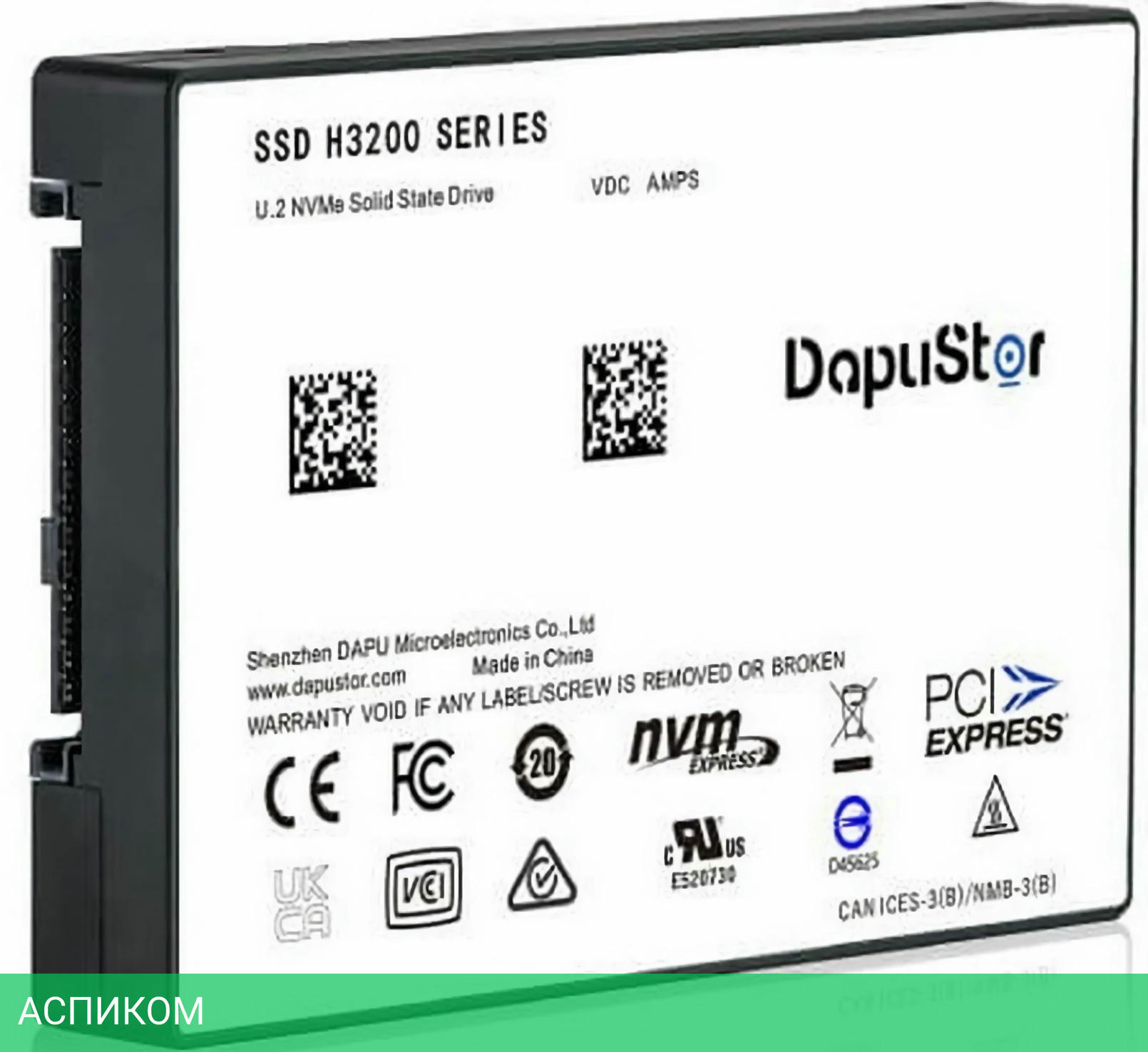 SSD диск DapuStor NVMe 1.92T H3200/2.5"/1.92 ТБ/PCI Express 3.0 x4/3500MBs/2700MBs/820K IOPS/115K IOPS/2M MTBF/3D TLC NAND
