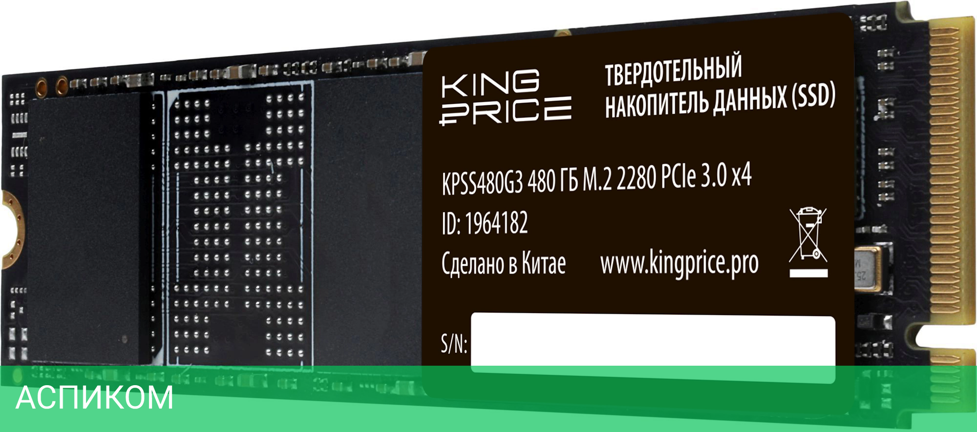 SSD диск KingPrice 480GB (KPSS480G3)/M.2/480 ГБ/PCI Express 3.0 x4/2000MBs/1600MBs/1.5M MTBF/3D TLC NAND/240TBW/RTL
