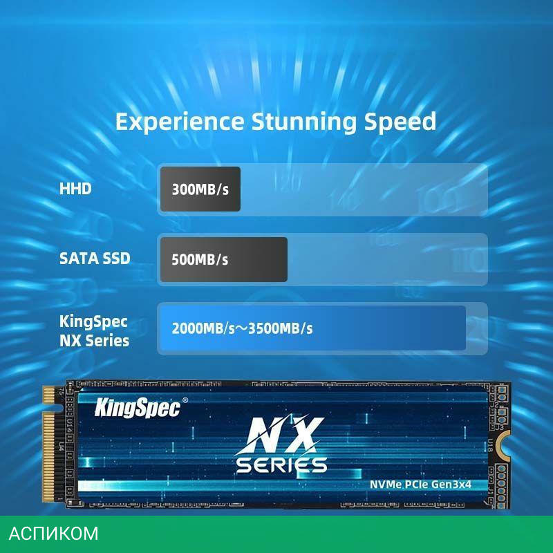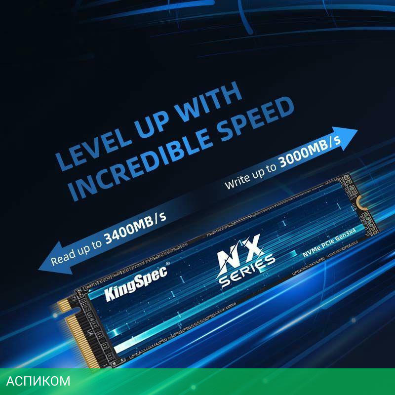 SSD диск Kingspec 1Tb M.2 2280 (NX-1TB)/M.2/1 ТБ/PCI Express 3.0 x4/3400MBs/3100MBs/250K IOPS/3D TLC NAND