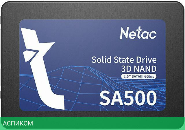 SSD диск Netac 512Gb SA500 (NT01SA500-512-S3X)/2.5"/512 ГБ/SATA/520MBs/450MBs/1.5M MTBF/3D TLC NAND