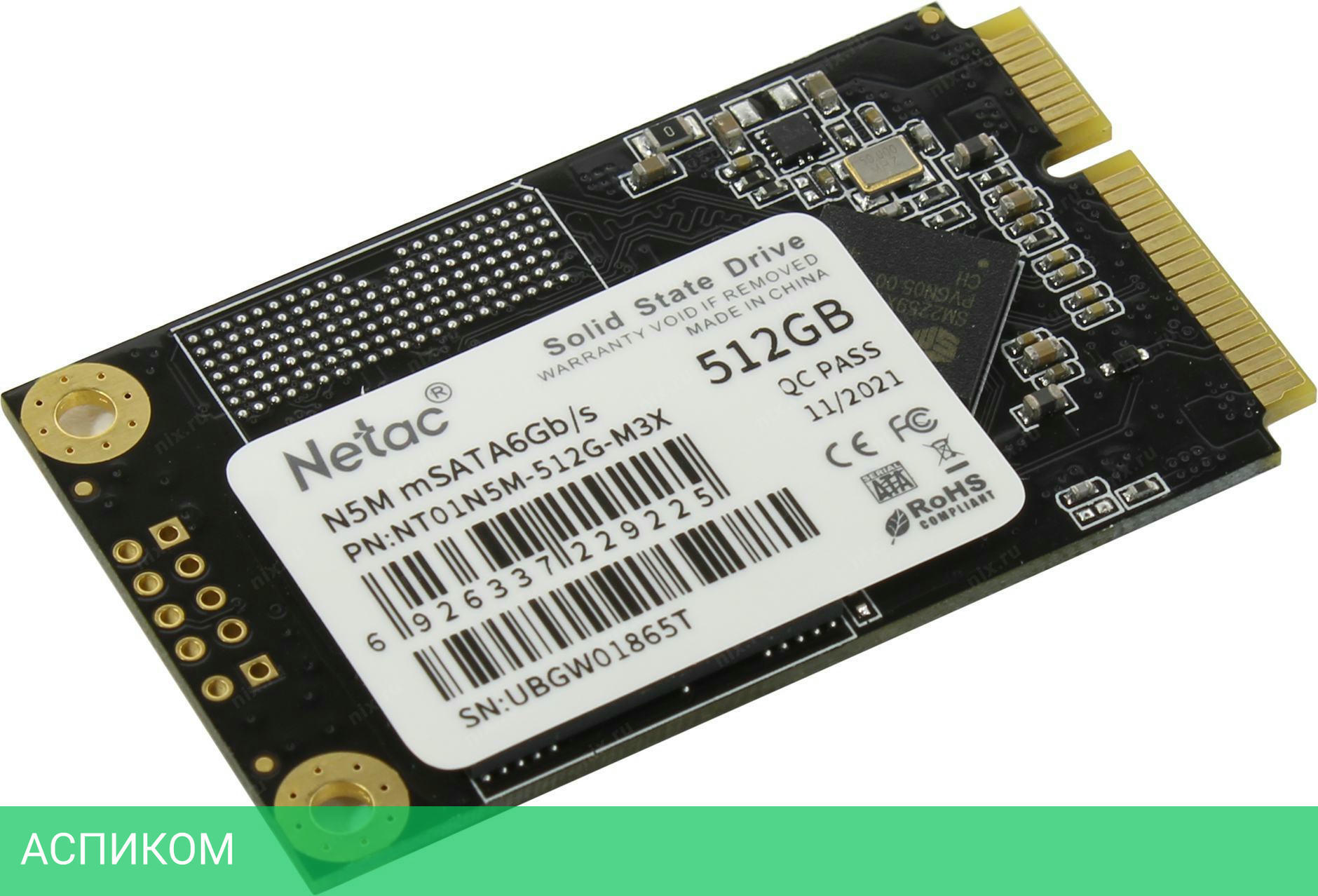 SSD диск Netac N5M 512GB (NT01N5M-512G-M3X)/mSATA/512 ГБ/SATA 3.0 (6Gbps)/540MBs/490MBs/1.5M MTBF/3D TLC NAND