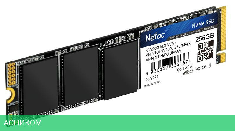 SSD диск Netac NV2000 256GB (NT01NV2000-256-E4X)/M.2/256 ГБ/PCI Express 3.0 x4/2500MBs/1000MBs/2M MTBF/3D TLC NAND