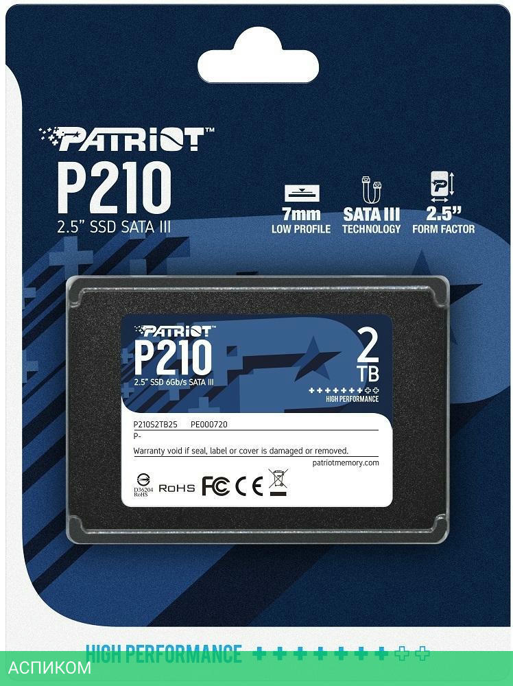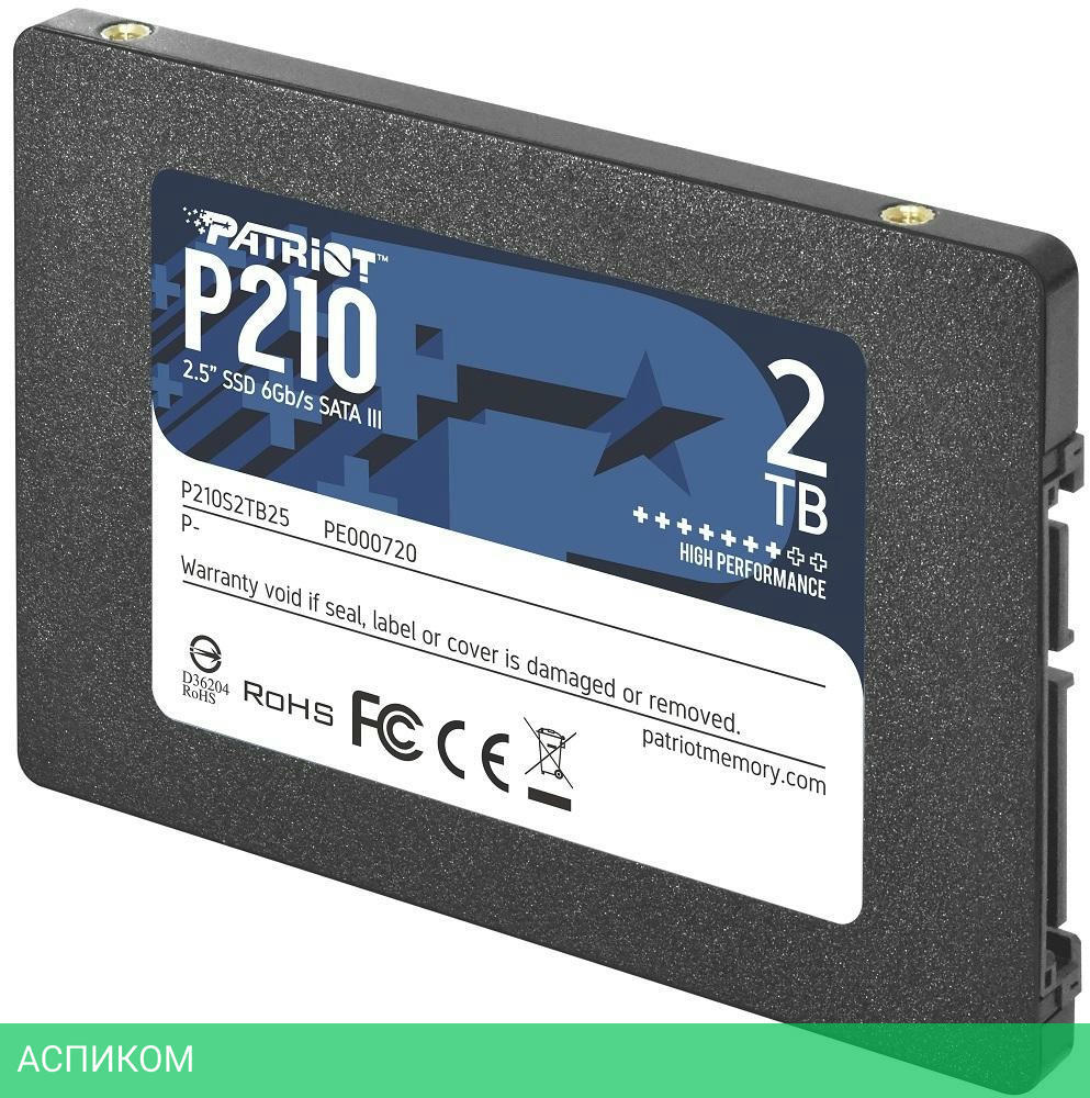 SSD диск Patriot 2.0Tb P210 P210S2TB25/2.5"/2 ТБ/SATA 3.0 (6Gbps)/520MBs/430MBs/50K IOPS/50K IOPS/2M MTBF/3D V-NAND