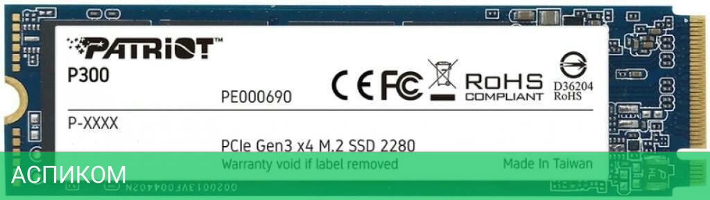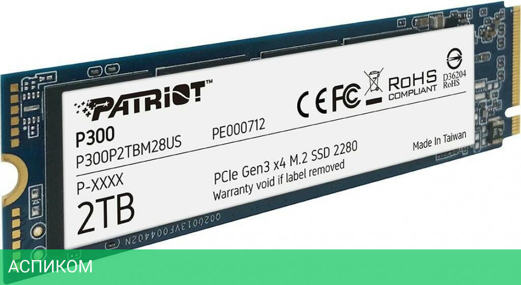 SSD диск Patriot M.2 2.0Tb P300 (P300P2TBM28)/M.2/2 ТБ/PCI Express 3.0 x4/2100MBs/1650MBs/290K IOPS/260K IOPS/3D TLC NAND