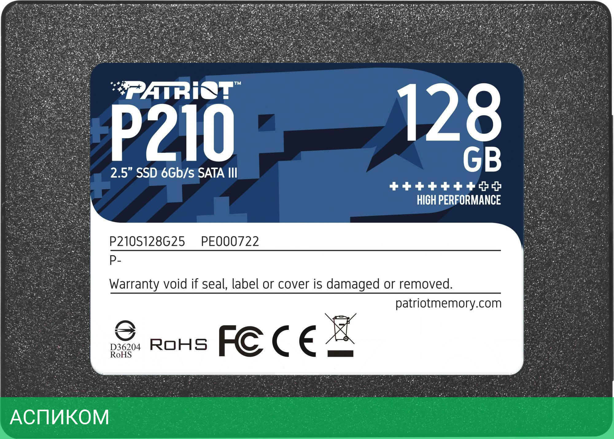 SSD диск Patriot P210 128GB (P210S128G25)/2.5"/128 ГБ/SATA/450MBs/430MBs/30K IOPS/30K IOPS/2M MTBF/TLC