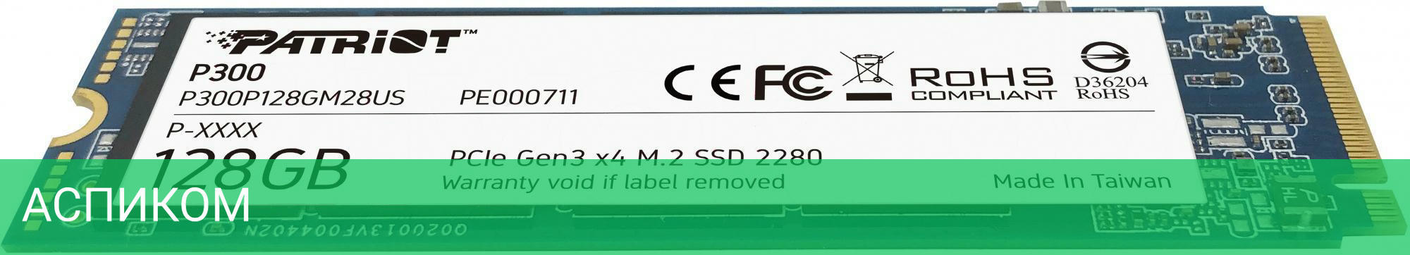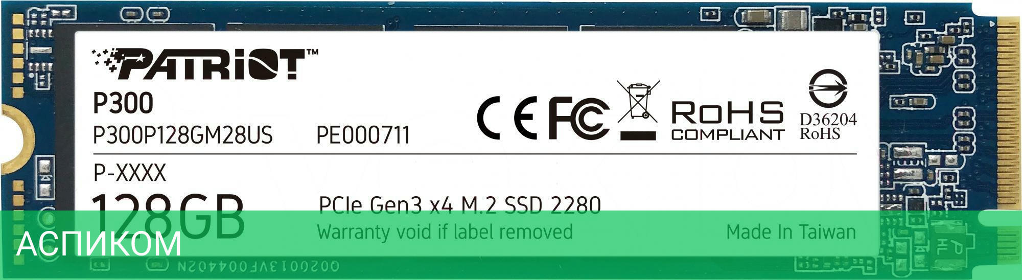 SSD диск Patriot P300P128GM28/M.2/128 ГБ/PCI Express 3.0 x4/1600MBs/600MBs/290K IOPS/150K IOPS/2M MTBF/3D TLC NAND