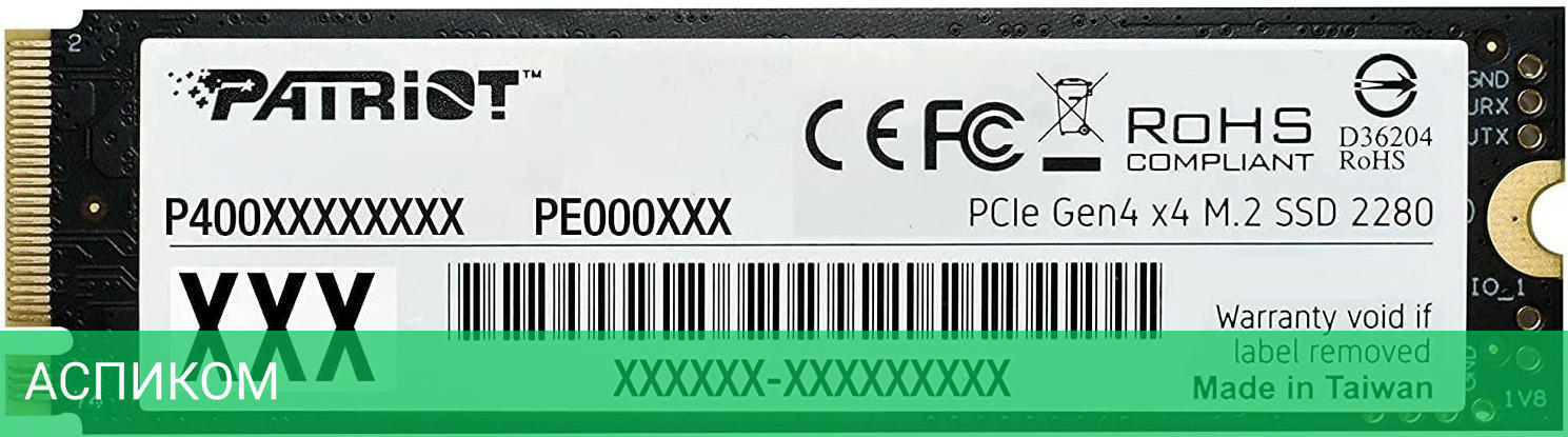 SSD диск Patriot P400 Lite 500GB (P400LP500GM28H)/M.2/500 ГБ/PCI Express 4.0 x4 (NVMe 1.4)/3500MBs/2400MBs/220K IOPS/500K IOPS/3D TLC NAND/280TBW/RTL