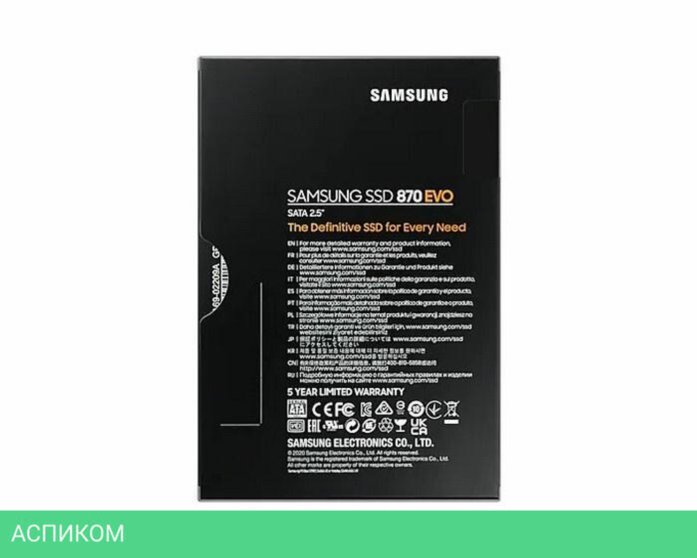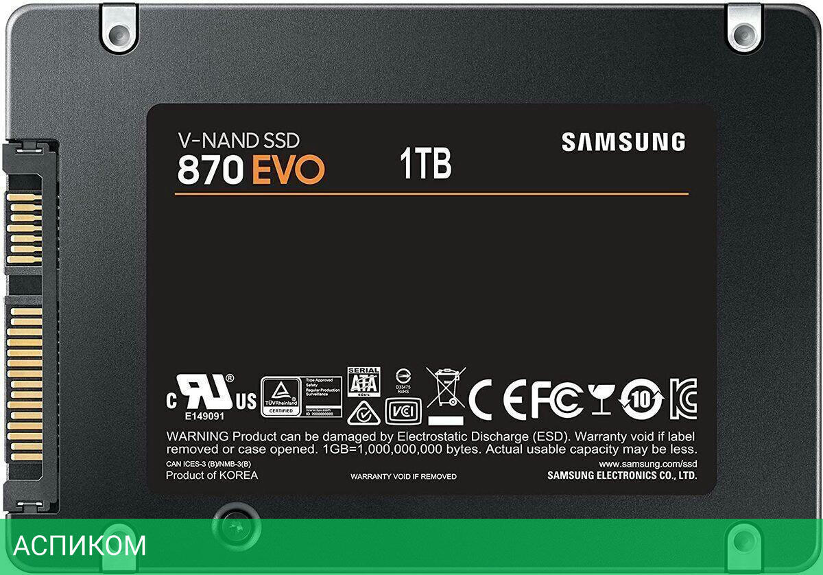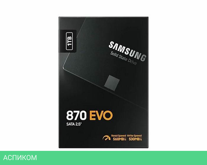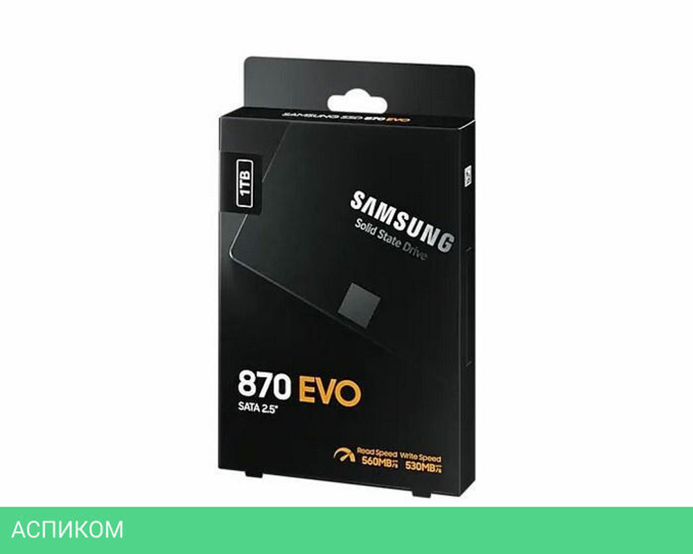 SSD диск Samsung 870 Evo 1TB (MZ-77E1T0BW)/2.5"/1 ТБ/SATA 3.0 (6Gbps)/560MBs/530MBs/98K IOPS/88K IOPS/1.5M MTBF/3D TLC NAND