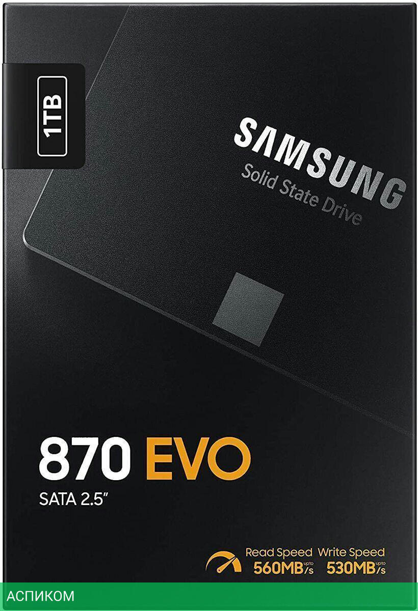 SSD диск Samsung 870 Evo 250GB (MZ-77E250BW)/2.5"/250 ГБ/SATA/560MBs/530MBs/98K IOPS/88K IOPS/1.5M MTBF/3D TLC NAND