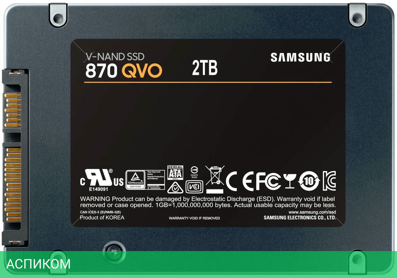 SSD диск Samsung 870 QVO 2TB (MZ-77Q2T0BW)/2.5"/2 ТБ/SATA 3.0 (6Gbps)/560MBs/530MBs/98K IOPS/88K IOPS/1.5M MTBF/3D QLC NAND/BOX