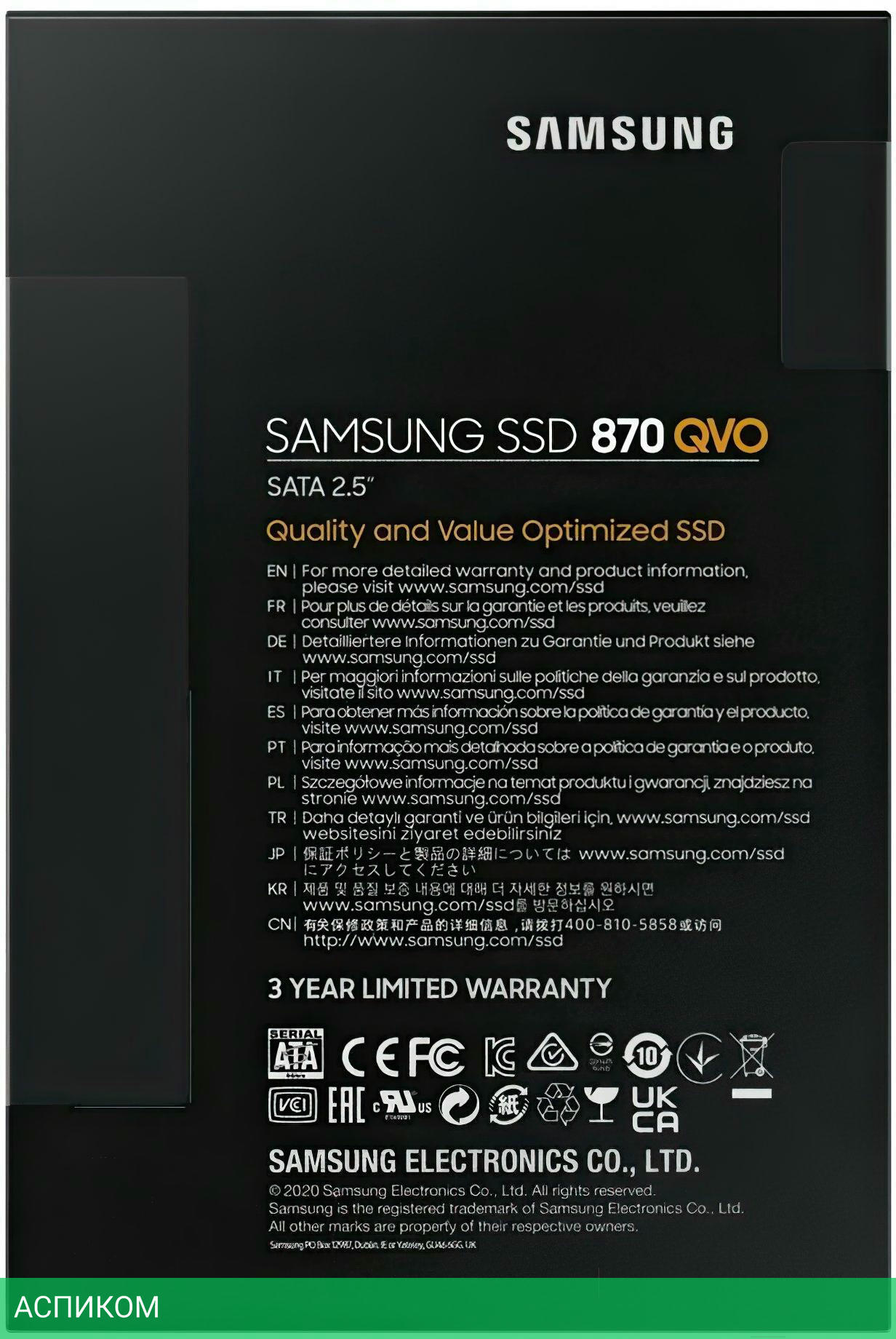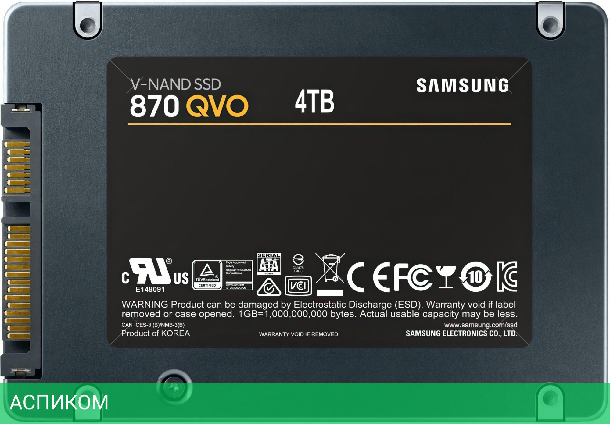 SSD диск Samsung 870 QVO MZ-77Q4T0BW/2.5"/4 ТБ/SATA 3.0 (6Gbps)/560MBs/530MBs/98K IOPS/88K IOPS/1.5M MTBF/3D QLC NAND/BOX
