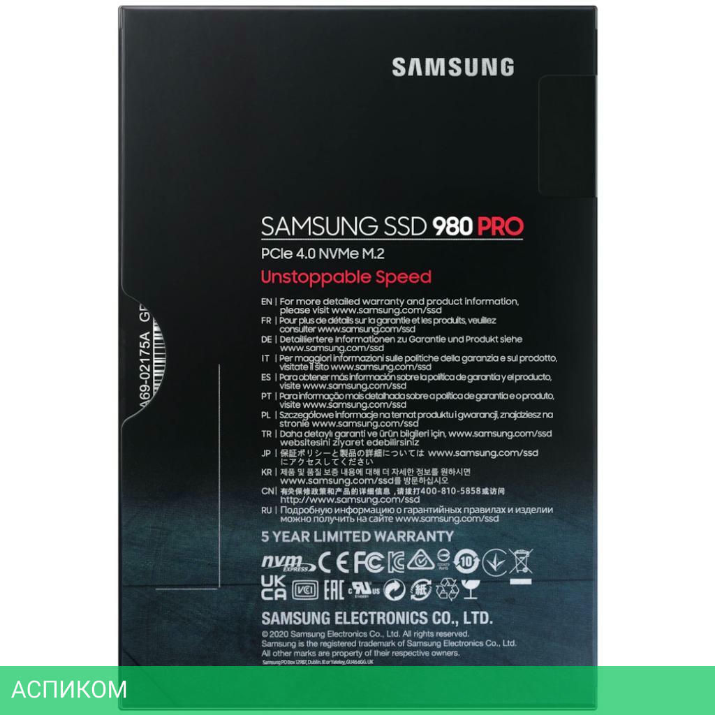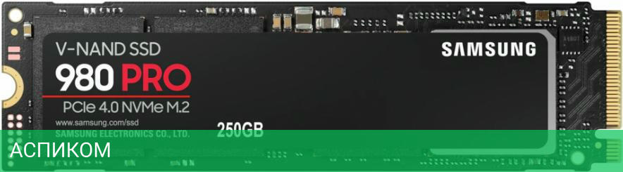SSD диск Samsung 980 Pro 250GB (MZ-V8P250BW)/M.2/250 ГБ/PCI Express 4.0 x4/6400MBs/2700MBs/500K IOPS/600K IOPS/1.5M MTBF/3D TLC NAND/BOX