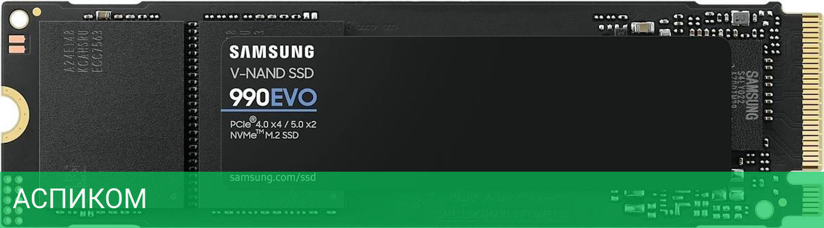 SSD диск Samsung 990 Evo 2Tb (MZ-V9E2T0BW)/M.2/2 ТБ/5000MBs/4200MBs/700K IOPS/800K IOPS/1.5M MTBF/3D TLC NAND/1200TBW/RTL