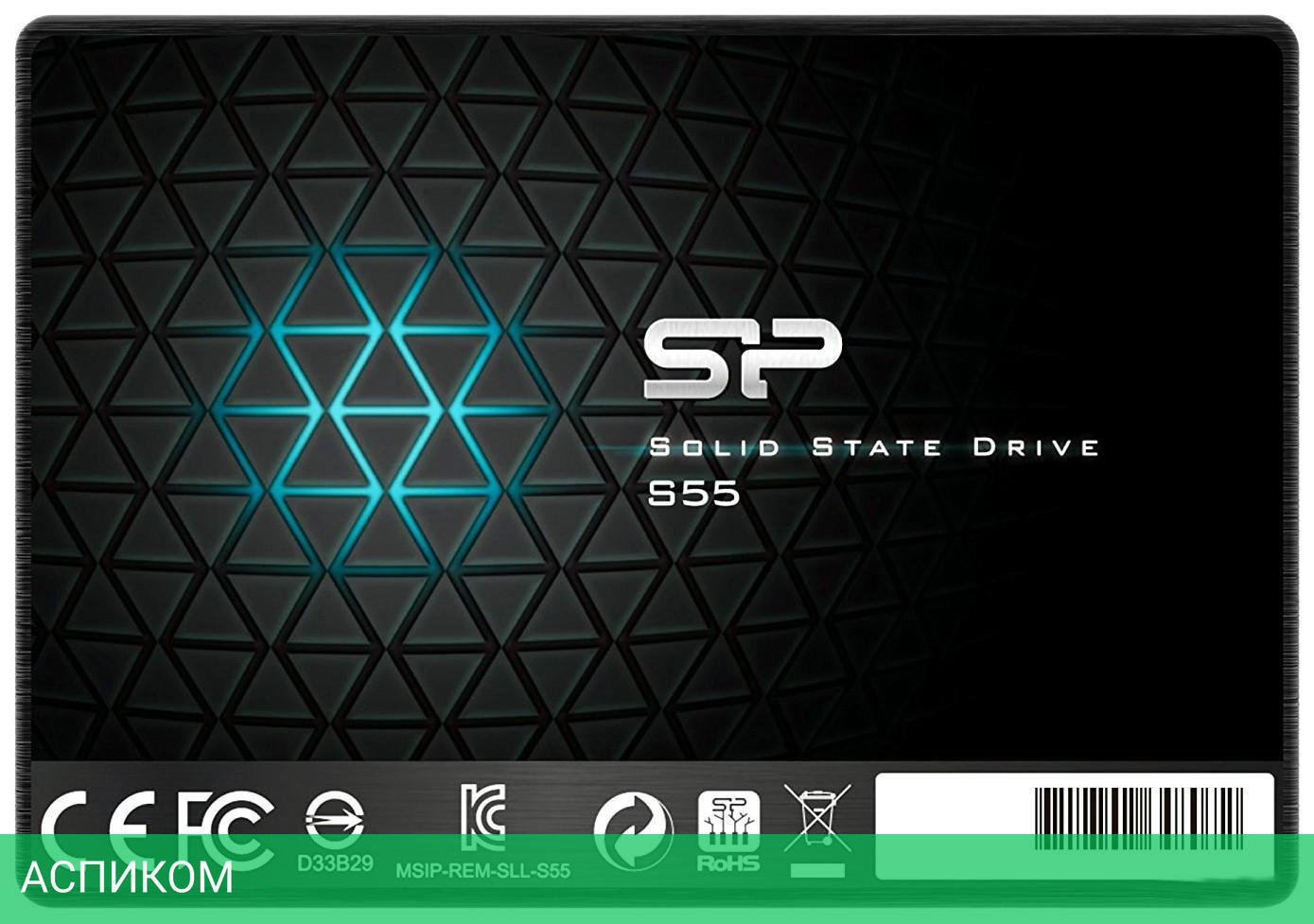 SSD диск Silicon-Power Slim S55 480GB (SP480GBSS3S55S25)/2.5"/480 ГБ/SATA/560MBs/480MBs/30K IOPS/1.5M MTBF/3D TLC NAND